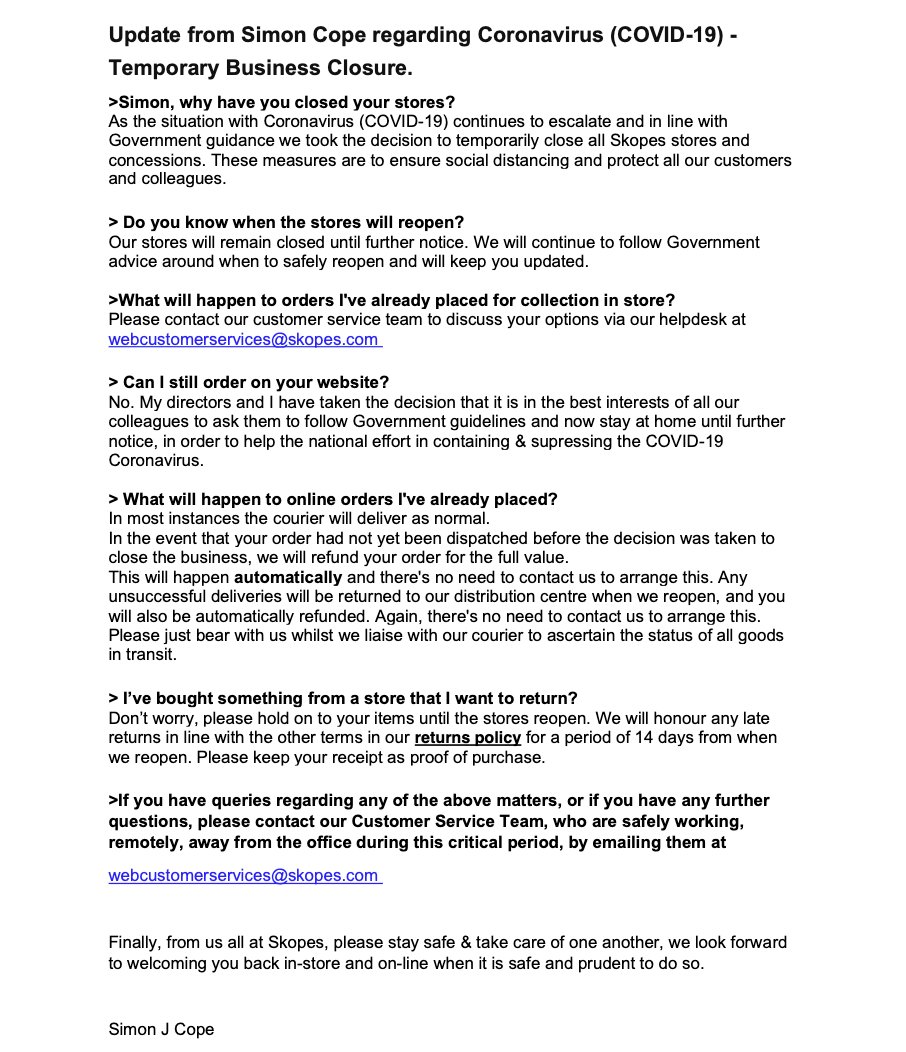 Skopes Twitterissa Here S An Update About Store Closures And Online Ordering Along With Answers To A Few Questions You Might Have If You Have Any Further Queries Then Please Don T Hesitate To